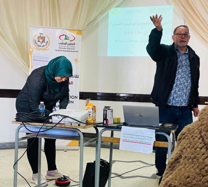 واختُتمت الدورة بحوار شامل ومفتوح ومشاركة جميع الحاضرات ، ساهم في تبديد أي غموض حول المفاهيم المطروحة، مع التأكيد على أهمية التعاونيات في تحقيق التنمية الاقتصادية والاجتماعية. وفي تصريح لرئيسة الجمعية حياة البشتي ،أكدت أن هذه الدورة تهدف ، إلى تحفيز النساء على الانخراط في التشغيل الذاتي، وتشجيع الراغبات في خلق مشاريع مدرة للدخل و إنشاء المقاولات والتعاونيات، وتبادل الأفكار بين المشاركات للتعرف على مقتضيات التشغيل الذاتي، وآليات تمويل المشاريع المتاحة .