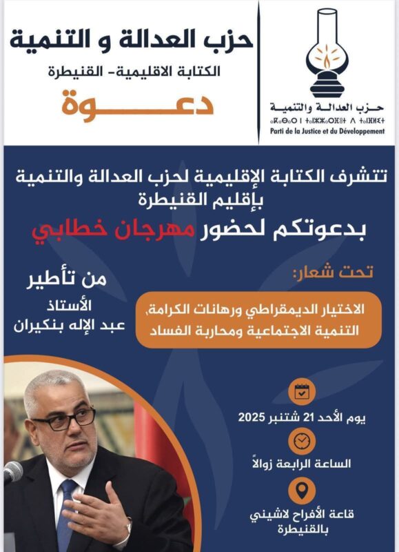 سيعقد حزب العدالة والتنمية مهرجانا خطابيا يوم الأحد 21 شتنبر 2025.