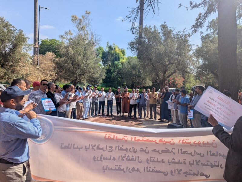 ورفع المحتجون شعارات تندد بما اعتبروه “حرمانا” يطال المزاولين لمهام الحراسة العامة والنظارة ورئاسة الأشغال من حقهم المشروع في المشاركة في الحركة الانتقالية، على غرار باقي أطر الوزارة.