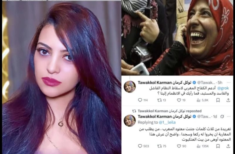 كيف تقبلون بأن تحصد هذه المدعوة توكل كرمان باسم جائزتكم تأثيرا دوليا – لتستغله في كل فرصة للتحريض على الاضطراب والفوضى والخراب – كما حاولت استغلال احتجاجات عضوية موجهة للحكومة المغربية من فئات وقطاعات متعددة بالمغرب :::