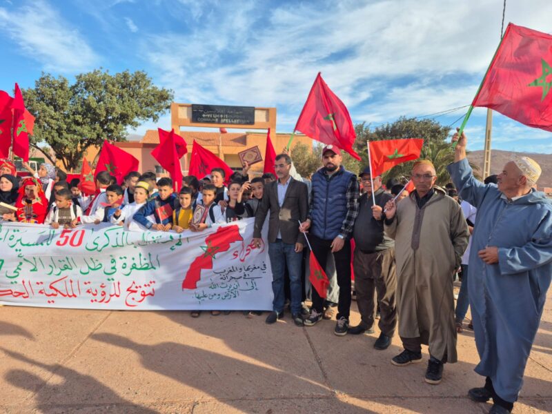 عاشت مساء اليوم الجمعة 7 نونبر من السنة الجارية، جماعة “افلايسن” التابعة لإقليم شيشاوة، حدثا بارزا هاما رفيع المستوى من الاحتفالات المخلدة للذكرى الخمسين للمسيرة الخضراء المظفرة، التي تتزامن هذه السنة مع صدور القرار الأممي رقم 2729، والذي جدد من خلاله المجتمع الدولي تأكيد وجاهة الموقف المغربي وسيادة المملكة على أقاليمها الجنوبية.