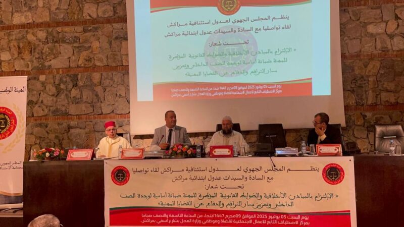 وفي انسجام تام مع هذا التوجه الوطني، أصدر المجلس الجهوي لعدول دائرة محكمة الاستئناف بمراكش بلاغًا قويّ النبرة، أعلن من خلاله انخراطه الكامل والمسؤول في قرار التوقف عن تقديم الخدمات العدلية، داعيًا كافة العدول والعدولات بالدائرة القضائية إلى الالتزام والانضباط لإنجاح هذه المحطة النضالية.