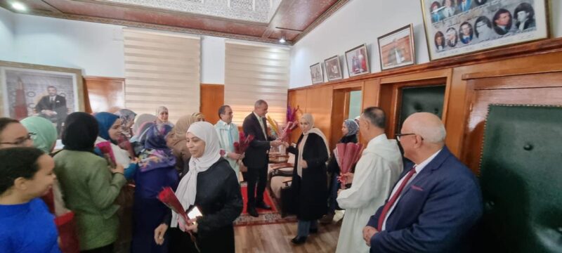 وفي ختام هذا الاحتفال الرمزي، قام السيد الوكيل العام للملك بتوزيع باقات من الورود على السيدات الموظفات والعاملات بالنيابة العامة، في بادرة تقديرية تعكس الاعتراف بالمجهودات التي يقدمنها يومياً خدمةً للعدالة.