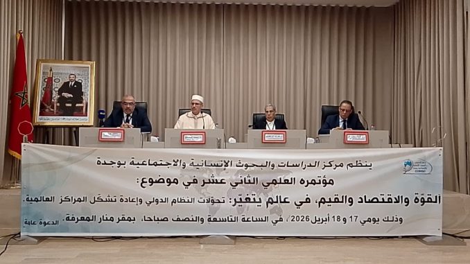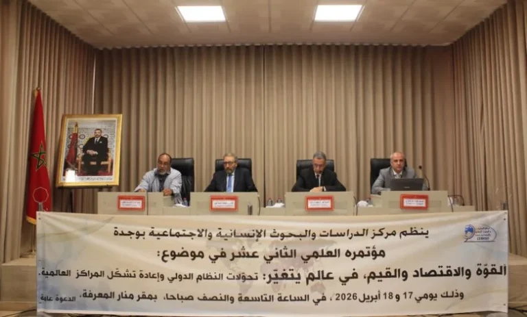 إحتضنت مدينة وجدة فعاليات المؤتمر السنوي الثاني عشر الذي نظمه مركز الدراسات والبحوث الإنسانية والاجتماعية يومي 17 و18 أبريل 2026، تحت شعار “القوة والاقتصاد والقيم في عالم يتغير”، حيث شكل هذا اللقاء العلمي منصة بارزة لمناقشة التحولات العميقة التي يشهدها النظام الاقتصادي الدولي.